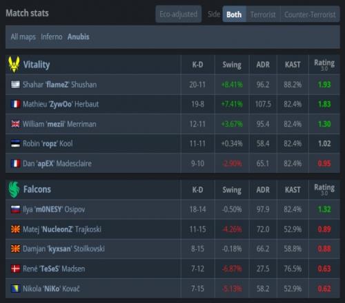Vitality:mezii、apEX、ropz、flameZ、ZywOo